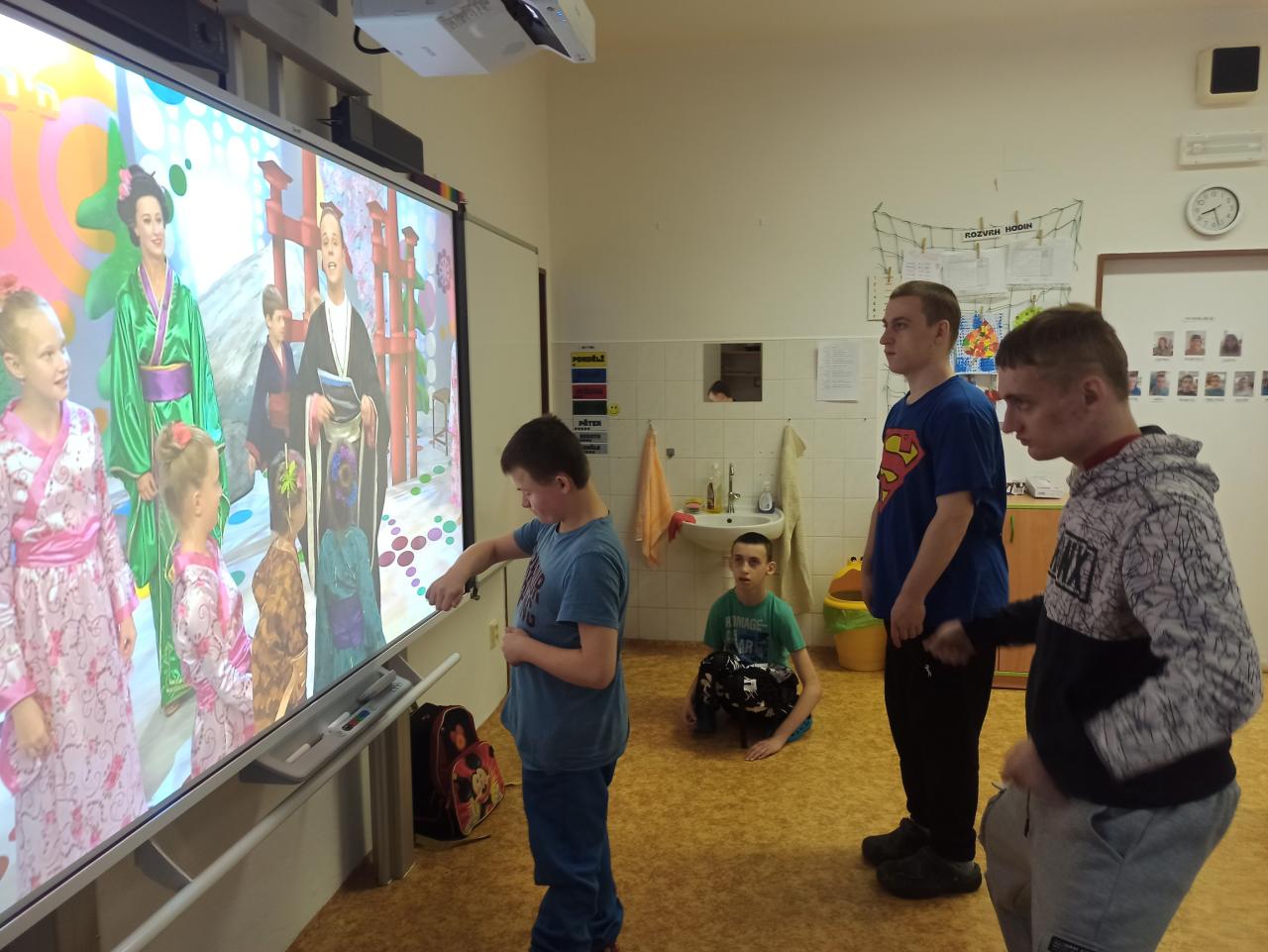japonský taneček, zkoušely si psát japonské písmo. Starší žáci vytvořili informační